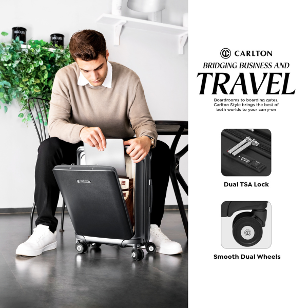 Elevate your business travel with the Carlton Business Cabin Trolley — the perfect blend of sophistication and functionality. Designed to fit in overhead compartments while still offering smart organisation, this cabin-sized trolley comes with a dedicated laptop compartment to keep your device secure and ready for action. The sleek finishes gives you premium styling, while features such as a structured frame, smooth-rolling wheels and high-quality zippers ensure dependable performance trip after trip. Whether you’re hopping between meetings or jetting off for a boardroom abroad, this bag works as hard as you do.