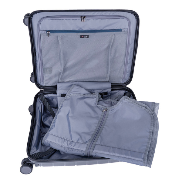 The Cellini Microlite Soft Top Business Carry On is a modern take on your traditional cabin suitcase and is packed with features for corporate travelers who have to work-on-the-go. It has a soft front compartment that fits up to a 17″ laptop, 11″ tablet and has power bank storage so you can charge your mobile on the go. It has Safe-T zips and a built-in combination lock to secure your bag and has Cellini’s Trakpouch to safely store your tracking device in the designated storage pocket. This bag comes with a 10 year warranty.